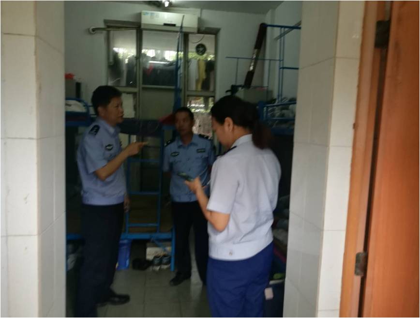 我校负责安全消防工作的部门领导和工作人员共5人,在德育副校长李校长的带领下,陪同区镇消防工作人员对对我校高考考点的试室、宿舍、消防设备设施等进行了详细的检查。