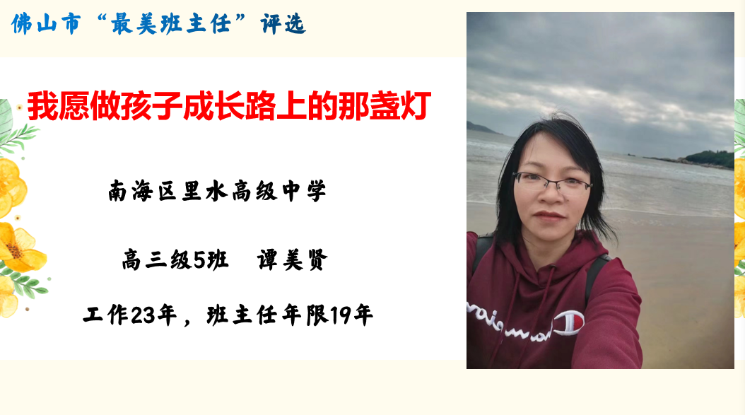 谭美贤老师于2000年6月毕业于华南师范大学化学教育专业。今年,是她在我校任教的第24年,也是从事班主任工作的第20年。谭美贤老师是一位经验丰富但又能保持年轻心态的班主任。她曾荣获佛山市优秀教师,南海区第四、第五、第六届名(骨干)班主任,南海区优秀班主任,南海区优秀教师,南商教育基金优秀班主任,第四届班主任能力大赛一等奖等荣誉称号。