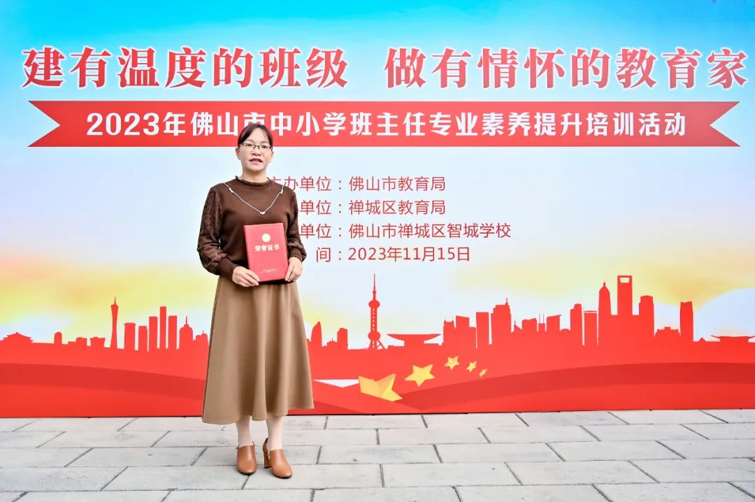 11月15日上午,佛山市首届中小学“百名最美班主任”颁奖仪式在禅城区智城学校举行。经个人申报,学校、镇、区推荐审核,市教育局组织专家遴选,最终评选出小学组42名、初中组32名、高中组20名、中职组6名,一共100名的佛山市“最美班主任”。祝贺我校谭美贤老师获得“最美班主任”荣誉称号。